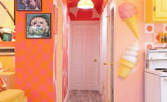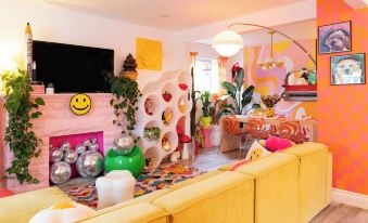Step into a living work of art—this bold, maximalist bungalow in Hamilton’s Bartonville neighborhood has been featured in Toronto Life, Zeit Magazin, and racked up over 8M views on YouTube. Bursting with colour, vintage finds, murals, and disco balls, it’s a joyful, photo-worthy escape with two bedrooms, one bath, a private backyard, and free street parking. Perfect for creative retreats or unforgettable weekend getaways.About pets:No pets allowed.About checkOut:Check out before 11:00 AM.About children:Children allowed: ages 0-17.About checkIn:Check in after 3:00 PM.About smoking:Smoking is not permitted.About minBookingAge:Minimum age to rent: 18.About events:No events allowed.