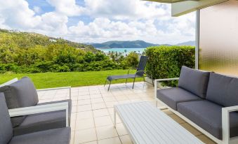 Sought after ground floor 2 bedroom apartment. Beautiful tropical surrounds, lovely water views and very popular location on Hamilton Island. The ground floor position is very popular as there is a lovely grassed area in front of the patio. Have a sunbake or the little ones will love the extra space to play.