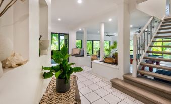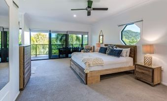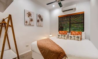 Upstairs a private haven awaits, with a spacious master suite and renovated ensuite. Enjoy a sumptuous breakfast on the timber deck overlooking the palms and lush surroundings with views to the horizon – the perfect start to another idyllic day in the heart of Hamilton Island.