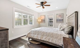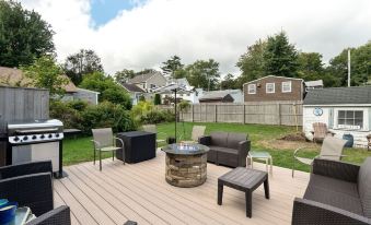 This is such a great house. The owner is a wonderful guy who communicates very quickly. The walk to the beach is maybe five minutes? It’s just a lovely little neighborhood in a beautiful part of Hampton. The house was spotless upon arrival. We loved sitting in the backyard around the gas fire pit. If you’ve never tried an outdoor shower, I highly recommend you do. I would 100% recommend this property and hope to return for another week someday!