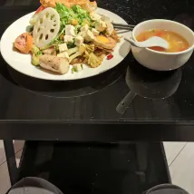 Согревающий ночной перекус: после девяти часов есть каша, лапша, вонтоны и т. д., но мы не заказывали никакой еды, так что она должна быть довольно хорошей.