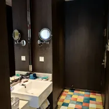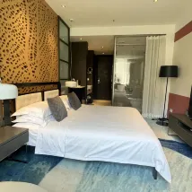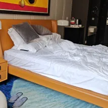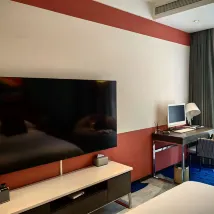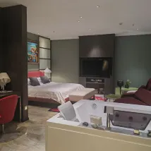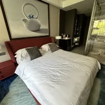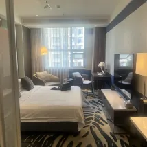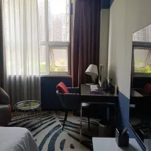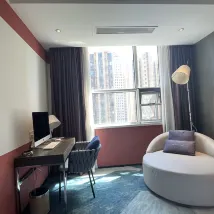 Удобства: Большой круглый диван в номере очень удобный, не ожидал, что в номере есть компьютер, хотя он и не включен, внизу есть наземные парковочные места, а количество парковочных мест ограничено. Обстановка в вестибюле отеля отличная. На завтрак я пошел в соседний ресторан. Ресторан не очень большой. Разнообразие среднее, но вкус хороший и свежий, особенно креветки и суп из белых грибов. Он также полон ингредиентов и искренности! Я очень рекомендую позавтракать здесь. Есть только один лифт, который относительно небольшой, и в часы пик нужно стоять в очереди. Одноразовые тапочки настолько креативны. Я побывала во многих городах и впервые увидела узор тканевого пледа, который мне настолько понравился, что я принесла его домой, тщательно обустроив бумажными пакетами, что очень удобно. Цены на напитки в мини-баре действительно очень разумные, а смешных цен вообще нет, что бывает редко. Единственный небольшой недостаток заключается в том, что расположение кровати и ванной комнаты в номере очень компактное. по выступающей напольной плитке на стыке пола легко удариться, поэтому нужно быть внимательным.