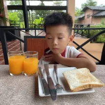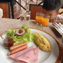 Завтрак очень хороший и обслуживающий персонал очень терпеливый.Очень удобно кататься на слоне.Окружающая среда очень хорошая.Вдали от шума и суеты города, вы можете наслаждаться утром под пение птиц и аромат цветов и тумана.