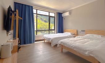 民宿的位置在浪廣村附近,浙西天路開頭,山川綠樹環繞。房間收拾的乾淨,被子比酒店的更透氣、乾燥、柔軟,窗户一關隔音相當不錯。老闆娘自己還種了菜養了雞鴨,還請了我們早飯,服務相當給力。唯一的不足可能是電熱水器,三個人的洗澡時間,到我最後一個人水有點不太燙了,但對於我來説也是小問題。