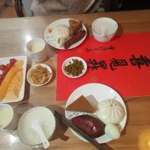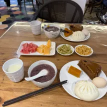 Нас было четверо, но номер был рассчитан на троих. Нам пришлось просить больше, но они даже не потрудились проверить и подготовить номер. Выбранный нами номер выглядел новым, с мебелью, но предоставленный нам номер не соответствовал описанию. Номер был старый и скудный. В этой поездке этот отель получил самый низкий рейтинг из-за хороших отзывов. На следующий день мы решили остановиться в другом месте. Завтрак был как на фотографии: стакан соевого молока, рисовая каша с двумя начинками и паровые булочки с овощами.