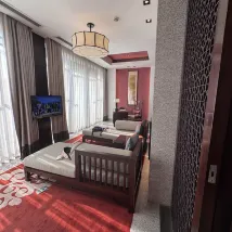 Пребывание в отеле Banyan Tree Hangzhou Xixi было идеальным. Будь то природный ландшафт, дизайн отеля или детали обслуживания, все это заставило людей почувствовать неповторимое очарование «Скрытого Цзяннаня»! Отель расположен в национальном водно-болотном парке Сиси, в окружении водных путей, зеленых деревьев и тростника, словно «концентрированный водный город Цзяннань». От теплого приема по прибытии до тщательного ухода во время пребывания — профессионализм и теплота обслуживающего персонала были очевидны на протяжении всего процесса. Просторный люкс украшен вышивкой цветов и птиц, демонстрирующей восточную элегантность. Современные удобства, такие как электрические шторы и отдельные душевые, обеспечивают комфорт и приватность. В номере также имеются чайные сервизы Кунг-фу и чайные листья Лунцзин. Днем вы можете насладиться чаем и видом на террасе, что подарит вам уникальный опыт дзен-терапии.