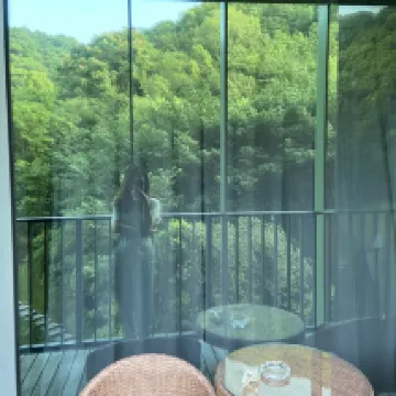 Отель обращен к горам сзади, с красивыми пейзажами и тишиной. Есть балкон с видом на горы, где можно послушать щебетание насекомых, увидеть далекие горы и попробовать чай.Очень приятно. Зал просторный и светлый, официанты в ресторане приветливые и добрые, а парень на стойке регистрации приготовил продуманные подарки🎁