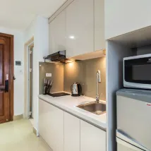Я забронировал для своего друга, ему здесь нравится, естественное освещение очень хорошее, поэтому в офисе светло. Интерьер новый и чистый, с достаточным количеством кухонной техники, если хотите. Рядом с рынком и лотереей, если вы хотите сходить за покупками и потусоваться