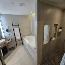 Просторный номер, хорошее обслуживание. У меня был номер с окнами на восток, где не работал горячий душ. Поэтому я сообщил о проблеме, чтобы они исправили ее на второй день утром. Позже тем же вечером, вернувшись, я получил записку и телефонные сообщения с извинениями, в которых говорилось, что их инженеры не смогли устранить проблему с горячим душем. Поэтому они предложили другой номер с окнами на север. Похожий по размеру и лучше оборудованный биде и теплым сиденьем для унитаза. Большое спасибо
