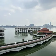 Отель находится в получасе езды от аэропорта, у Западного озера, со множеством водных номеров. Общая обстановка очень вьетнамская. Отель находится в новом районе города Ханой, с удобным транспортом и без пробок. Санитария средняя, завтрак очень обильный, а обслуживание не соответствует стандартам звездного отеля.