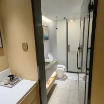 Пребывание было очень приятным. Отель удобно расположен, совсем рядом со станцией высокоскоростной железной дороги, что делает транспорт удобным. Удобства отеля в полном объеме, особенно автоматические диспенсеры для воды, которые удобны и гигиеничны. Персонал на стойке регистрации был очень дружелюбным и заранее предоставил дождевик, когда шёл дождь. Внизу также есть много ресторанов. В целом, всё было просто замечательно! 👍 Единственное, что хотелось бы отметить: можно было бы регулировать «умные» шторы в номере; их открытие и закрытие не очень чувствительные!