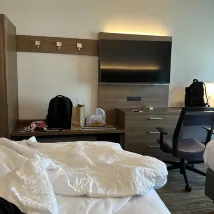 I lived my stay so much I didn’t want to leave. The bed was incredibly comfortable, I was so happy to see a coffee machine and microwave in my room, and the complementary toiletries were a life saver. 1000% would stay again. Only thing I would like to see improved are the breakfast options and double checking on cleaning bathrooms.