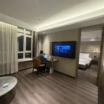 Прежде всего, расположение хорошее. Он находится в 200 метрах от станции метро Xidaqiao. Планировка номера разумная, с двойными туалетами и большой душевой. Если придираться, то гардеробная слишком мала. вода и бесплатные напитки в номере, хотя отопление не очень мощное и кондиционер. Температура может подняться уже через 5 минут после включения. Завтрак довольно хороший, не много, но все равно сытно.