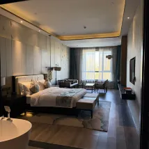 Мы приехали в отель рано утром, и наш забронированный номер ещё не был готов. Менеджер на стойке регистрации заранее предоставил нам номер с видом на реку, откуда открывался потрясающий вид на реку Сунгари. Номер был невероятно просторным, с каждой кроватью шириной 1,5 метра. Он был роскошным и чистым, со всеми новыми и многочисленными удобствами. Нам также предоставили бесплатное молоко на ночь, американский кофе и показ мод в стиле чонсам. Это было отличное соотношение цены и качества! Завтрак был невероятно обильным, а ресторан – уютным и элегантным, с приятной атмосферой. Парковка также была удобной, а охранник был внимательным, что создавало ощущение полной безопасности.
