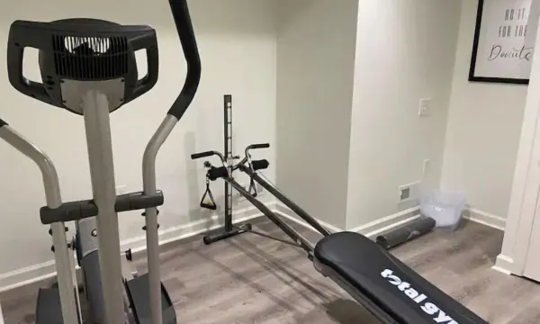 This is a 4 bedroom, 3.5 bathroom house, with a spacious open layout that includes the fully equipped kitchen, living room and dining room. The river can be seen from the all spaces in the main area. There is a laundry room with washer and dryer; and a gym with an elliptical, total gym, small tv and a yoga mat. The fourth bedroom is combined into a playroom and tv room with two sets of bunk beds. The house has outdoor decks facing the river on both levels. It has a hot tub and an outdoor shower (weather permitting). There is an outdoor dining area with a grill that gives guests great views of the river and comfortable shade for sunny days. There is also an assortment of board and card games to enjoy.