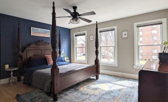 The Master bedroom is blessed with a 4 poster king-sized bed and huge walk in closet. The eastern-facing windows let the most pristine morning light in in the mornings. On the other hand, if you like to sleep in, our black-out shades will keep it dark and cozy. Black-out shades and high-end linens provided in every bedroom.