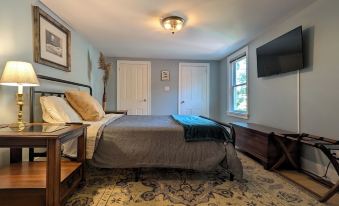 The back bedroom has a queen bed and a smart TV, great for occupying the kids.