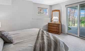 Beyond the dining room lies the primary suite, boasting a queen-sized bed and a lavish primary ensuite with a jetted tub and rainfall shower. With four spacious bedrooms, a large dining room with seating for 10 guests, and numerous gathering spaces, there is plenty of room for everyone to relax and unwind.