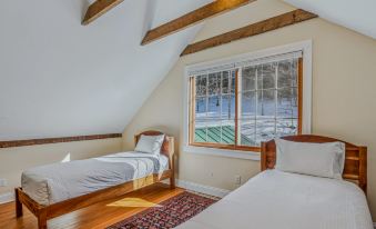 The cottage is ideally located just minutes from Woodstock and Quechee, Vermont, making it convenient for dining, shopping, and sightseeing. Surrounded by nature, it offers expansive riverside views, a mountain stream, and quiet country roads, perfect for walking, running, or biking. During the summer months, guests can rest assured that the house stays cool with the help of three window AC units, ensuring comfort in the bedrooms and main living areas.