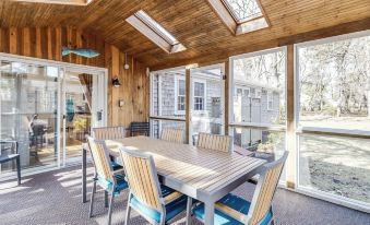 This 4-bedroom dog friendly cottage in Harwich is perfect for your escape to tranquility. With 2 queen beds, 1 full bed, & 2 twin beds, guests will find this delightful property to be a charming coastal retreat for parties of all ages & generations. Enjoy the peaceful surroundings & modern amenities like WiFi, AC, & a washing machine. The spacious, private fenced in backyard with a grill, screened in porch & patio space provide extra outdoor space for your family to enjoy a meal & unwind after a glorious beach day. Don't forget the Cape Cod favorite outdoor shower!