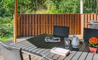 Single-family house, built in 2001. 1.2 km from the sea. Private: natural state property 800 m2. Barbecue. In the house: sauna, washing machine, tumble dryer. Parking at the house. Grocery 2.5 km. The owner does not accept any youth groups. "Emmie" - 1.2km from the sea", 4-room house 100 m2. Object suitable for 8 adults. Living room with TV. 1 room with 1 double bed. 1 room with 1 double bed. 1 room with 2 beds. 1 room with 2 beds. Kitchen (oven, dishwasher, 4 ceramic glass hob hotplates, microwave, freezer). 2 showers/WC, hydro massage bath. Facilities: children's high chair, baby cot. Internet (WiFi). Please note: non-smokers only. 400
