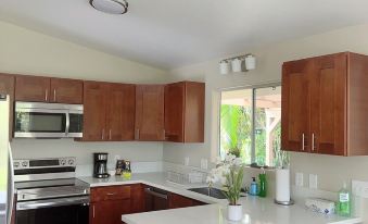 Flowers and fruits ! Orchids , flowers Breadfruit , passion fruit , avacardo , grapefruit,lemon, sugar cane growing in the yard.About pets:No pets allowed.About checkOut:Check out before 10:00 AM.About children:Children allowed: ages 0-17.About checkIn:Check in after 4:00 PM.About smoking:Smoking is not permitted.About minBookingAge:Minimum age to rent: 21.About events:No events allowed.