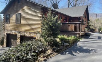 Take it easy and unwind at this tranquil, dog friendly, and truly beautiful getaway located in the heart of the Smoky Mountains, just minutes from the Blue Ridge Parkway, Great Smoky Mountain National Park, Maggie Valley, Cataloochee Ski area, Harrah’s Casino Resort in Cherokee, and the picturesque town of Waynesville. Asheville and it’s regional airport is just 45 minutes away. Every modern convenience is available at the cabin’s rental suite, but with palpable rustic “mountain” charm. Included in this tastefully appointed first floor suite with it’s own private entrance is an open concept living room with cozy wood stove, kitchenette, bedroom with walk-in closet and a full, renovated bath. Guests access the cabin’s rental suite through french doors from a spacious, covered deck with comfortable seating, a gas grill, and amazing views of the property grounds and surrounding mountain vistas and pristine old growth forests. The living room sofa doubles as a sleeper bed, which along with the full bedroom allows for 4 guests to sleep comfortably. Other amenities include a well equipped kithenette with microwave, large air fryer oven, compact refrigerator, cook top, toaster, and Keurig coffee maker; a cozy wood stove with firewood provided by owners is available during the fall and winter months for supplemental heat. A well maintained hot tub, fire pit, recently upgraded free high-speed Wi-Fi, and large screen smartTV are also available to guests. The property surrounding the cabin is truly impressive, with old growth maples, hemlocks, oaks, Rhododendrons, with impressive mountain views. For fishermen, a beautiful trout stream is a quarter of a mile away. Interstate 40 is just three miles away and allows for quick and easy access to and from the cabin. Parking is free on the property and there is no cleaning fee. Dogs stay free of charge, and you can bring up to two dogs with no restrictions on weight or size! Owners/operators of the property are present at the cabin’s second floor residence and are available to guests to provide assistance as needed at the cabin, and as a helpful resource to better understand and appreciate the more desirable eating establishments in the area, points of interest, hiking trails, and must-see sites in and around the National Park, Blue Ridge Parkway, and surrounding area. You’ll want for nothing in this well appointed, spotlessly clean space in one of America’s most sought out vacation destinations!About pets:Pets allowed: dogs (limit 1 total).About checkOut:Check out before 11:00 AM.About children:Children allowed: ages 0-17.About customRules:Only allow 4 guests. No parties or events allowed. Smoking on premises allowed outside only..About checkIn:Check in after 4:00 PM.About smoking:Smoking is not permitted.About minBookingAge:Minimum age to rent: 21.About events:No events allowed.