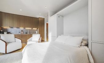 The 10-acre Mill District neighborhood is the new gateway to Healdsburg, located steps from the historic town plaza. Set amidst a preserved grove of redwood trees, Mill District offers luxury residences and a neighborhood park. The world-renowned wine, food, and outdoor adventures of Sonoma County are just moments away. Canopy is the first collection of luxury residences available at Mill District, featuring 43 condominiums by world-renowned architects Olson Kundig. This is a truly unique, one of kind development in a very special small town. Its no secret Healdsburg is an extravagantly fun and beautiful place to visit. Cond Nast Traveler further attested to its appeal in its 2024 Readers Choice Awards, released Oct. 1, in which Healdsburg ranked among the best cities in the United States. The list, divided into big and small cities, listed Healdsburg as the No. 8 best small city in America. This unit is furnished with two luxury swivel chairs with ottoman to relax in, marble top dining table with two tasteful and comfy dining chairs. The high-end foam mattress provides the perfect combo of comfort and support. High speed internet, wi-fi, everything brand new, floor to ceiling windows, high ceilings, view of the redwoods and park, and steps from downtown.