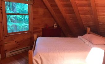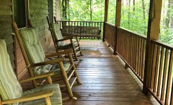The cabin is perfect for those looking for a quiet & cozy mountain getaway. This 2 bedroom, 2 bath cabin has a fireplace and pullout (queen size) sofa in the main living room as well as an upstairs loft area that has a pullout (queen size) sofa. You can relax in the rocking chairs or swing on the front porch. The back porch has a grill for you to enjoy a picnic on the deck. Cabin has AC, free Wifi & a television.