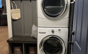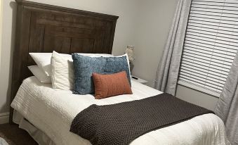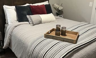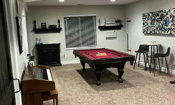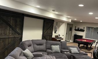 About the Suite: This commodious 2BR/1 BA suite is a private in-law basement unit, beautifully appointed, and thoughtfully designed for your comfort. Accommodating up to 6-8 people, the suite features 2 comfortable queen bedrooms a murphy bed, and a pull-out sofa bed The small kitchen is fully equipped for preparing hearty meals, and you'll have free WIFI, a large reclining sofa, and a 75’’ TV for entertainment. This space also includes a full-sized pool table. Plus, enjoy exclusive access to a hot tub in the backyard.