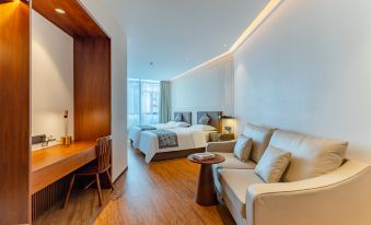 大廳寬敞 環境很好,地理位置也不錯 附近還有很多吃的 交通也很方便 特別是前台服務超級超級好!辦理入住很快,房間設施齊全,床很舒適,房間小冰箱裏面有免費的飲料礦泉水,小愛同學全屋控制 特別不錯,特別滿意的一次入住體驗!