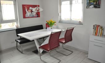 All in all, the apartment is very comfortably and tastefully furnished, located on the edge of Heitersheim, in a very quiet and idyllic location. It has WiFi, two HD TVs (in the living room and bedroom, one with NETFLIX), parquet and stone floors.