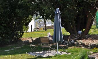 Our brand new, very quiet apartment was furnished with love and taste by us. The 85sqm apartment is on the ground floor and has a separate entrance. There is a parking lot directly in front of it. It has three rooms and a very nice, covered patio, right in front of the kitchen. Of course, our extensive garden can also be used. Garden furniture and deck chairs are ready for you.