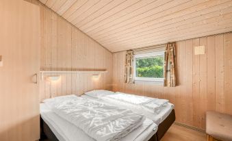 Single-family house, built in 2001. 8 km from the sea. Private: property 957 m2, well-kept garden. Terrace (75 m2). In the house: sauna, washing machine, tumble dryer. Parking at the house. Grocery 800 m. The owner does not accept any youth groups. "Robertha" - 800m to the fjord", 3-room house 82 m2. Object suitable for 6 adults + 1 child. Living room with TV, radio, CD-player and DVD. 1 room with 1 double bed. 1 room with 1 double bed. 1 room with 2 beds. Kitchen (oven, dishwasher, 4 ceramic glass hob hotplates, microwave, freezer). Shower/WC, hydro massage bath. Terrace 7 m2, roofed. Facilities: children's high chair. Internet (WiFi). Please note: non-smokers only. Maximum 1 pet/ dog allowed. Bookings accepted for holiday purposes only. 760-6578