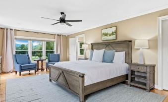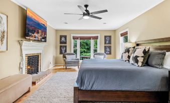 - Second Primary Suite (Bedroom #3): King-sized bed, wood-burning fireplace, and en-suite bathroom