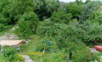 In the garden are always chickens and running ducks on the way, who actually live in the neighboring garden, but can not be deterred from the fence by a visit.