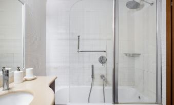 Pamper yourself with access to the sauna and hot tub/Jacuzzi within the building complex, promising moments of relaxation and rejuvenation. The apartment also features a luxurious bathtub, ensuring every moment is spent in utter comfort.