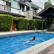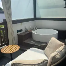 Номер чистый, аккуратный и большой, что действительно здорово. Особенно обслуживание, которое просто потрясающее. Все сотрудники очень любезны и у них очень хорошее отношение. Это мой второй визит, и в следующий раз я приведу туда своих друзей. Поскольку в этот раз кафе находилось на реконструкции, нам показалось, что чего-то не хватает. Мы могли только плавать, купаться в бассейне, купаться в бассейне и снова купаться в бассейне, хаха.
