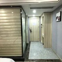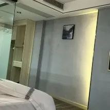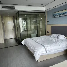 房間空間夠,有兩瓶樽裝水贈送,衛生間有浴缸,廳和房各有一部電視機。wifi不用密碼,但要電話号码登记,我個人更喜歡用密碼登入,因較有安全感。 空調可调大小,也佷给力,並沒有嘈音,風量大時間會有些風聲,風量小的時會很安靜。 熱水足夠強,花灑水壓偏少。 衛生打掃情況尚可,床和梳化也整潔,但床上只有兩個枕頭,而這兩個枕頭是不同款式的的,一高一矮。地氈有少許污漬,窗的下方有明顯的小黑点。 房間没有明顯煙味,大堂和電梯有時會聞到佷重的煙味。 隔音不算太理想,走廊的声音在房間的廳會聽到,房間的寢室关上門就聽不到走廊的声音。酒店外是行車路,房間也會聽到車声,但不算太嚴重。 酒店二樓可直達金沙灣食府,早歺可在這解決,很便宜。