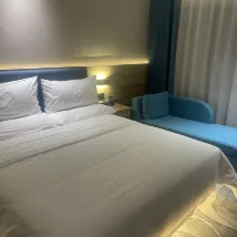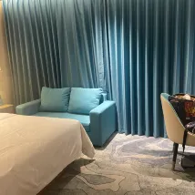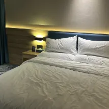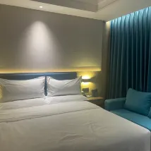 酒店設施較新,有小智管家聲控系統。但是樓下的飯店包房唱K T V太吵,已經晚上八點五十五分了還在唱,影響休息,前台服務熱情周到,有自己的停車場,停車方便