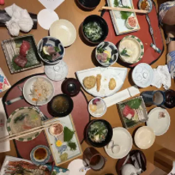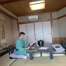 Сервис: До станции Атагава ходит маршрутный автобус, который ходит каждые полчаса. Автобус выглядит очень мило. Главное, что я хочу сказать, это то, что парень на стойке регистрации был очень милым. Мы опоздали на последний автобус обратно в Атагаву, чтобы посмотреть фестиваль фейерверков в Атами. Парень на стойке регистрации поехал на станцию Идзу-Плато, чтобы забрать нас. Хотя мы не понимали языка, мы чувствовали, что он был полон энтузиазма, ありがとう😭Что касается еды, каждый ужин разный, но вы все равно можете есть настоящую кухню кайсэки, вкусную темпуру можно есть в неограниченном количестве, а красные пельмени с фасолью для вечернего перекуса каждый день!うまい😋
