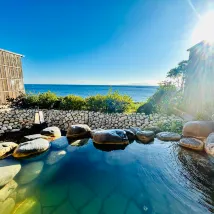 Есть общественные горячие источники, один с видом на море, другой с видом на горы, а мужские и женские ванные комнаты будут меняться утром и вечером. Юката отеля очень красивая и отлично смотрится, когда гуляешь и фотографируешь. За дополнительную плату можно забронировать частное посещение горячих источников.