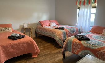 The primary bedroom includes a queen bed as well as 3 twin beds. There is also an en-suite bathroom with a private toilet/shower room, a large tub, and a double-sink vanity. The second bedroom has two queen beds and a twin bed while the third bedroom has two queens. The second and third bedroom share the hallway bathroom with a private shower/toilet room and a single-sink vanity.