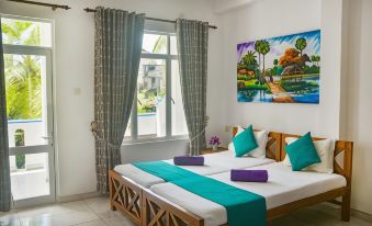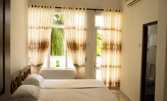 Сам отель замечательный. Внешне выглядит даже лучше,чем на фото. Перед отелем есть водоём,в котором плавают вараны. Утром поют птички,а отель окружён экзотическими расстениями. Рядом ходят поезда,но не по ночам и не часто. Мне не мешали.Всё работало,порядок и чистота идеальные,как в операционной. Хозяин установил правило,при входе обувь оставляем,моем ноги от песка(для этого все условия есть) и проходим. Поэтому чисто. Иногда ночью выключали горячую воду,но можно принять душ до ночи и сиди сколько хочешь. В отеле тишина и покой,шуметь не разрешается. Рядом с отелем Буддийский храм.До моря конечно не 200 м.,как там пишут,по прямой не получится,надо свернуть и идти вдоль шоссе и если тебя не сшибут(никаких правил дорожного движения там не существует),то пройдя ещё 200 м и перейдя дорогу оказываешься на берегу океана. Рядом пляж с большими черепахами. Единственный минус(поэтому сняла звезду),если едешь на экскурсию(они почти все начинаются в 4 утра),то хозяин положенный тебе сухпоек за оплаченный завтрак не даст. Уговаривать бесполезно. Говорит,что вставать рано и заморачиваться даже не собирается. Если уезжаешь до 8 утра,то завтрак тебе тоже не дадут. В бассейне купаться не разрешает. Не хочет потом чистить.Теперь о деревне.Почти во всех кафе и ресторанах меню на русском языке и вообще Хиккадуву местные называют "русская деревня",там где-то 80% туристов из России. Чувствуешь себя,как дома. Ланкийцы многие говорят на русском,доброжелательные,общительные,отзывчивые с отличным чувством юмора. Тут некоторые пишут иначе,но видимо у них самих проблемы. В магазинчиках,если поторговаться,то торговцы выгодно для тебя снижают цены. Если скачать приложение PickMe,то можно вызывать тук-тук или такси по реально низкой цене. Мы в Галле на тук-туке доехали за 1766 рупий (примерно 600 руб.). Обратно на местном весёлом автобусе( номер 2, 32 и 388) - 100 рупий с человека. На рубли - почти бесплатно.