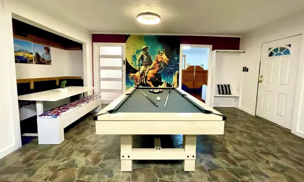 A Buck&JoJo propertyAbout pets:Pets allowed: limit 2 total.We don’t have fenced yard, must be house trained..About checkOut:Check out before 10:30 AM.About children:Children allowed: ages 0-17.About customRules:Do not place personal belongings like luggage on pool table. No drinks are to be set on edge of table and no playing of beer pong on the pool table..About checkIn:Check in after 3:30 PM.About smoking:Smoking is not permitted.About minBookingAge:Minimum age to rent: 21.About events:Events allowed: family gatherings, birthday parties, weddings.Maximum event attendees: 15.