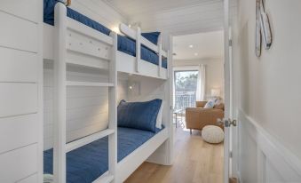 The villa can accommodate up to four guests and features a queen-size bed in the bedroom and 2 hallway bunkbeds with reading lights and charging ports. The villa also includes a eat-in, kitchen, bath, and laundry alcove. This complex is directly on the Beach, and has it's open private gate with washdown area after a great time on the beach!