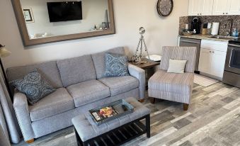 This condo has a beautiful, full front view of the ocean. The condo has an open feel to it, is very clean, well stocked. It is also close to shops, The French Bakery & Skull Creek Dockside SkDockDocksrestaurant