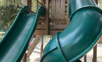 -Updated Kids Playground with swings, slides, climbing wall and forts