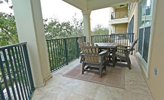 The balcony has a table that seats four allowing for outdoor dining or relaxing. Two additional high-top chairs and an end table make a wonderful place to enjoy your morning coffee.