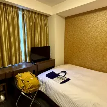 От станции Химедзи до отеля можно дойти пешком примерно за 15-20 минут, но он находится недалеко от замка Химедзи. На верхнем этаже есть небольшая терраса, с которой открывается вид на замок Химедзи. Номер небольшой, но расположение хорошее, и после распаковки чемодана можно легко перемещаться. Я останавливался только на одну ночь, и цена была приемлемой.